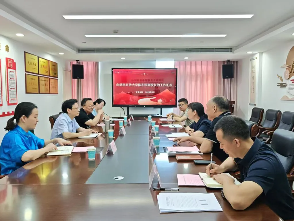 5月14日,湖南开放大学党委委员、副校长陈志国率教务处处长王中军、招生就业与系统建设处处长刘腾、教务处副处长刘力一行到卫生分校开展调研指导工作。卫生分校校长虞江丽陪同调研并作专题汇报,副校长张光明主持调研座谈会。